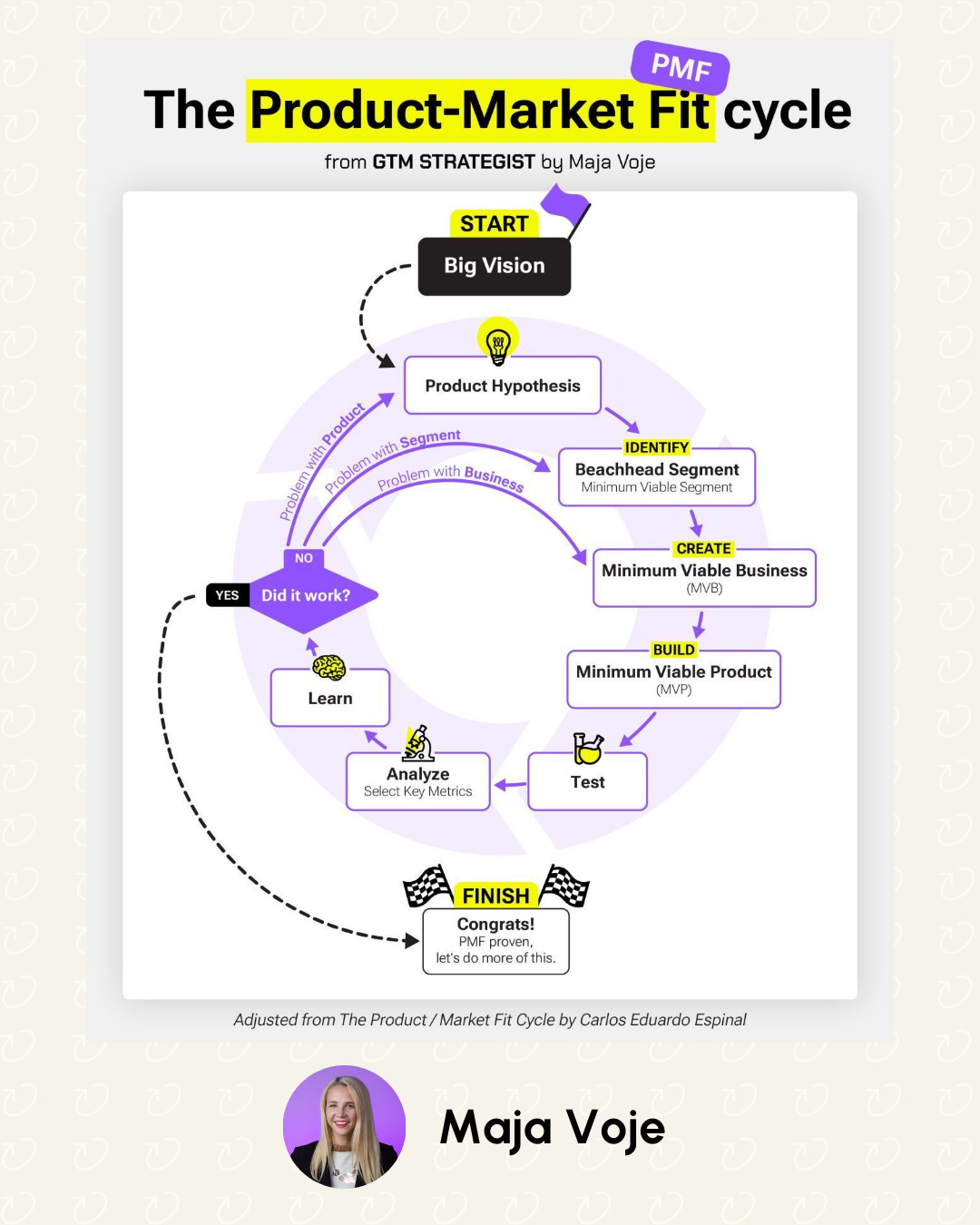 A Maja sugere um loop para o processo para atingir o Product-Market Fit:
